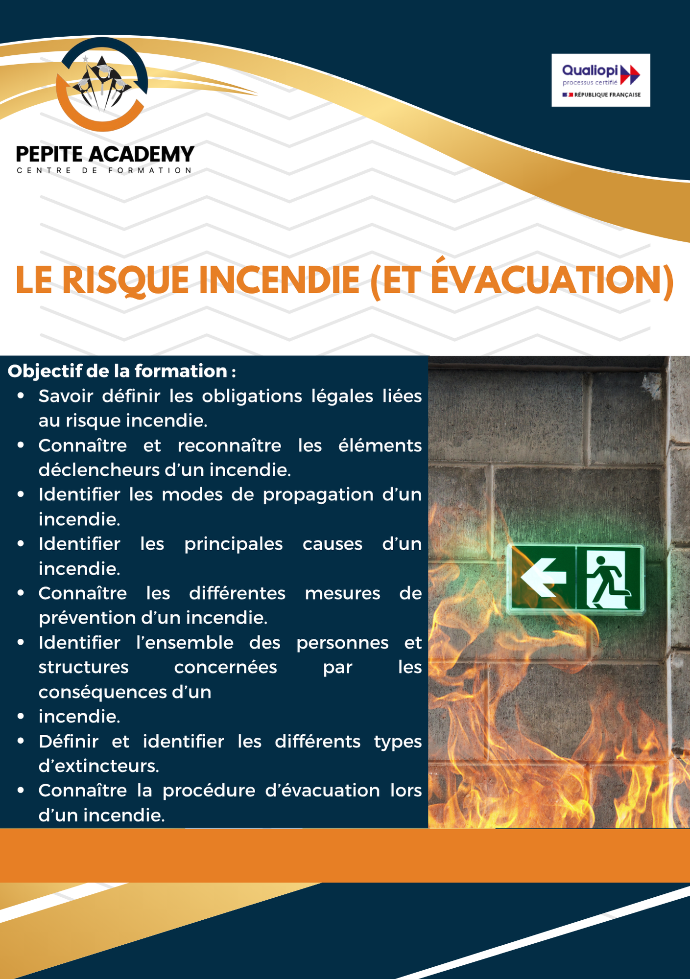 - Savoir définir les obligations légales liées au risque incendie.