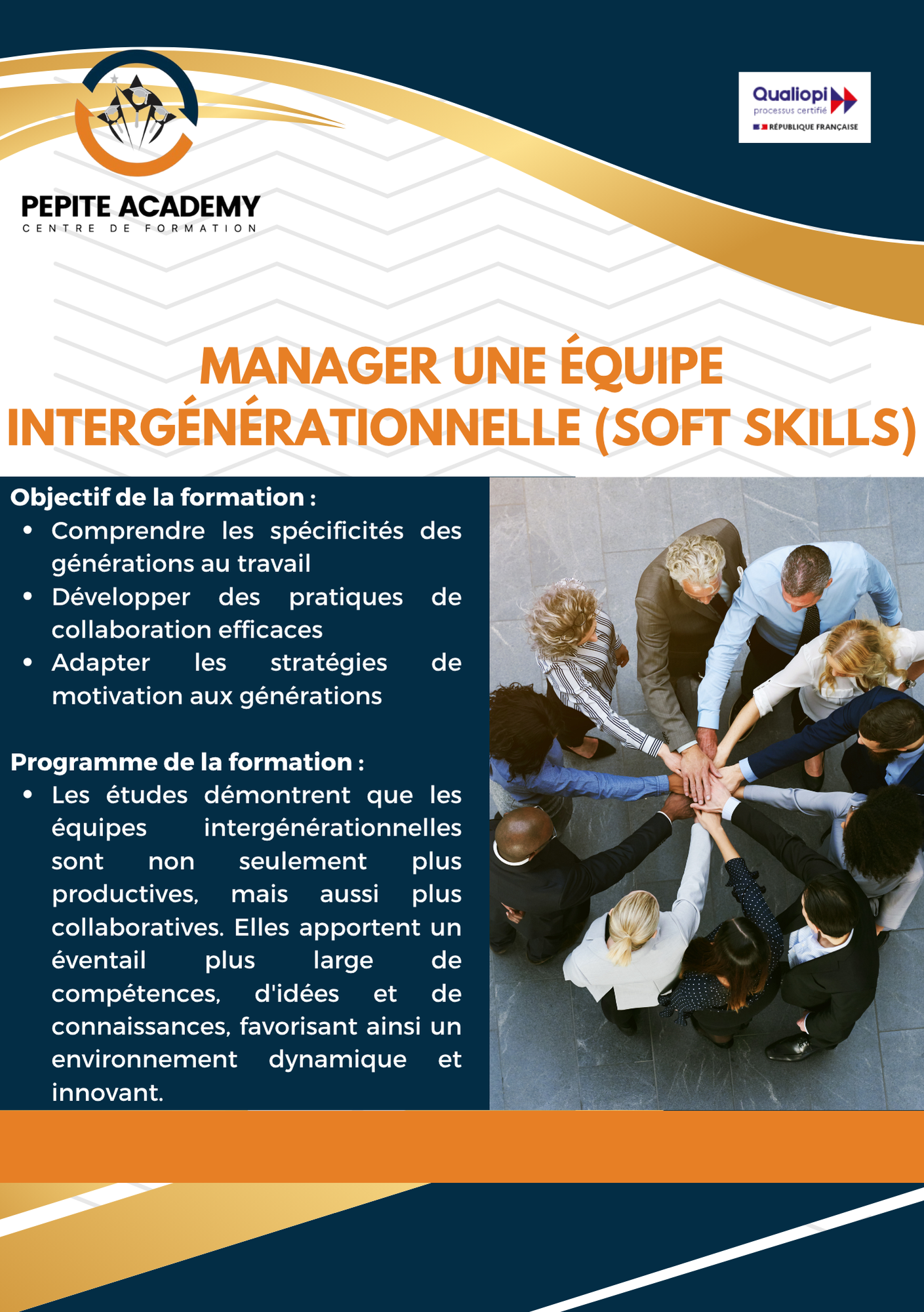 Cette formation révolutionnaire vous offre les clés pour comprendre les spécificités de chaque génération et transformer la diversité en force collective. Grâce à une pédagogie immersive utilisant des extraits de séries et de films captivants, vous découvrirez comment développer des pratiques de collaboration épanouissantes et adapter vos stratégies de motivation à chaque génération. Les études le prouvent : les équipes intergénérationnelles ne sont pas seulement plus productives et collaboratives, elles fusionnent un éventail plus large de compétences, d’idées et de connaissances qui créent un environnement véritablement dynamique et innovant. Avec ce parcours complet conçu par Pépite Academy, vous deviendrez un leader inspirant capable de naviguer les préjugés et de créer une synergie authentique au sein de votre équipe. Maîtrisez l’art du management intergénérationnel et propulsez votre entreprise vers le succès !
