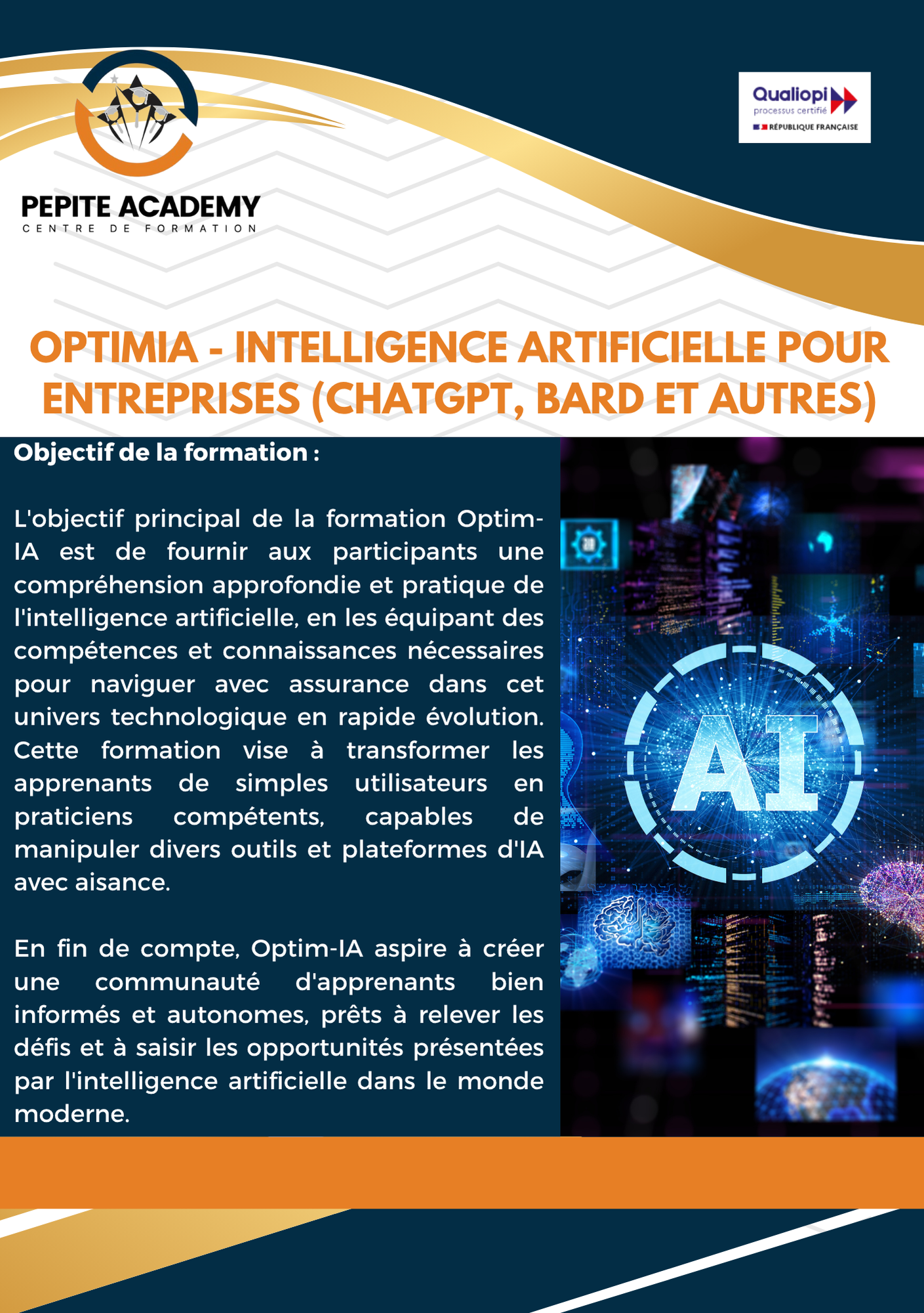 Optim-IA n’est pas seulement une formation, c’est une porte d’entrée vers la maîtrise de l’IA, ouvrant des avenues d’innovation et de créativité pour les professionnels et les passionnés d’IA.