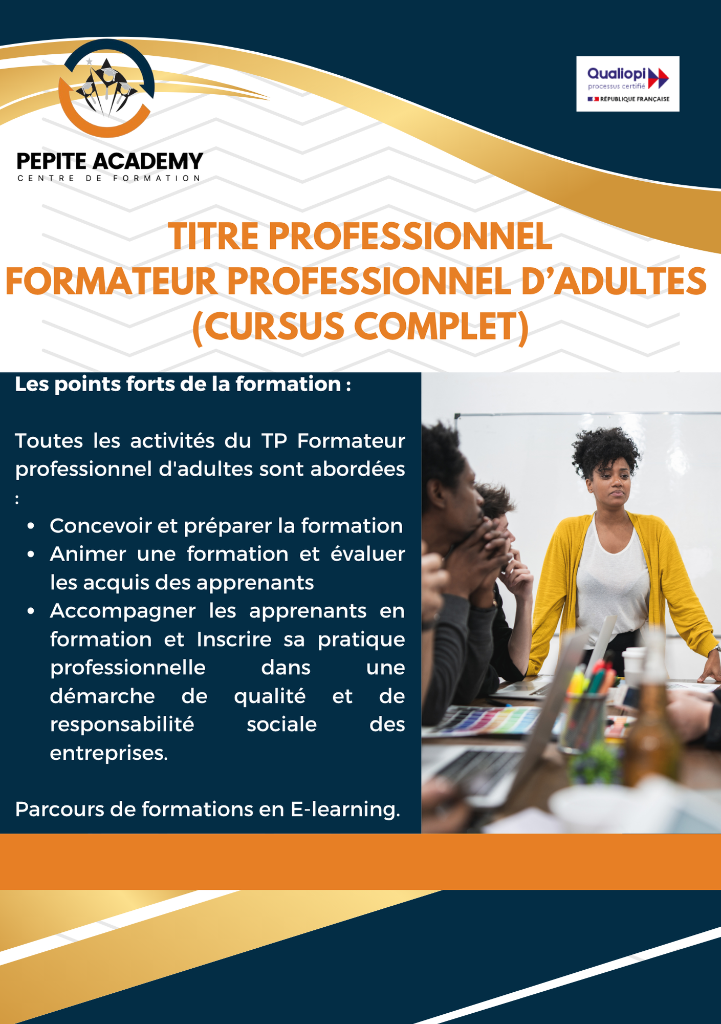- Toutes les activités du TP Formateur professionnel d’adultes sont abordées :